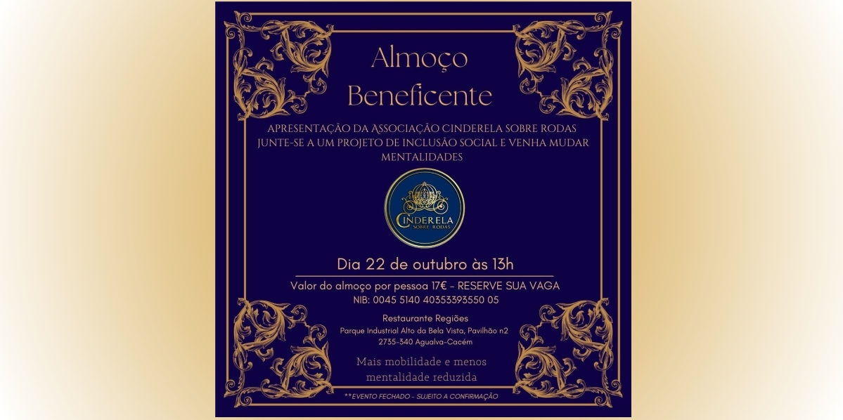No próximo dia 22 de Oububro 2022 pelas 13h, estaremos juntos no Almoço Beneficente, para a Apresentação da Associação Cinderela sobre Rodas!